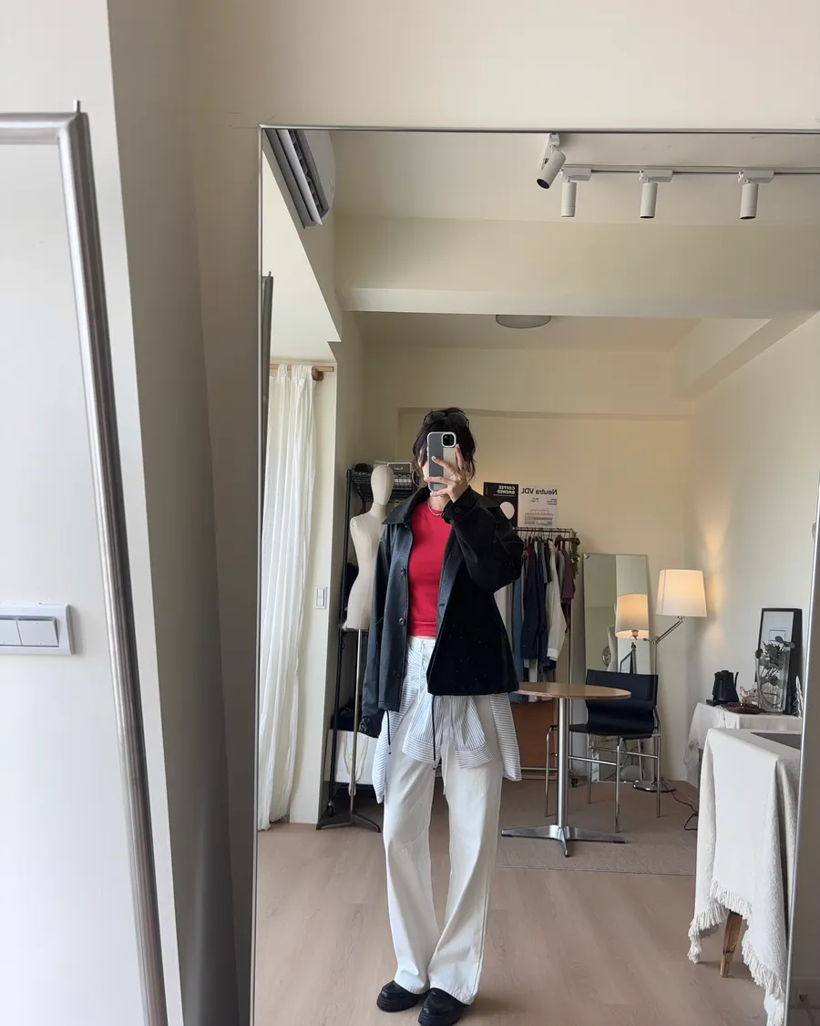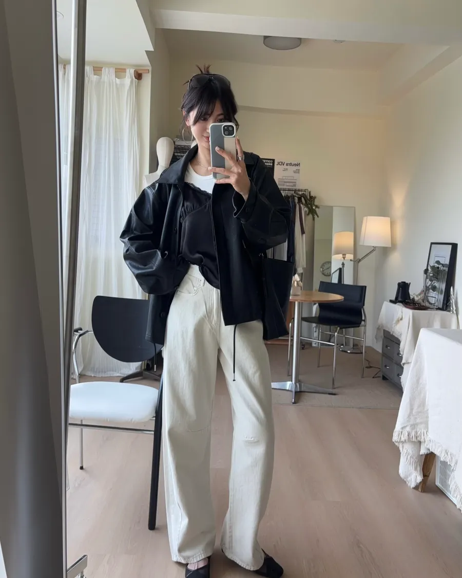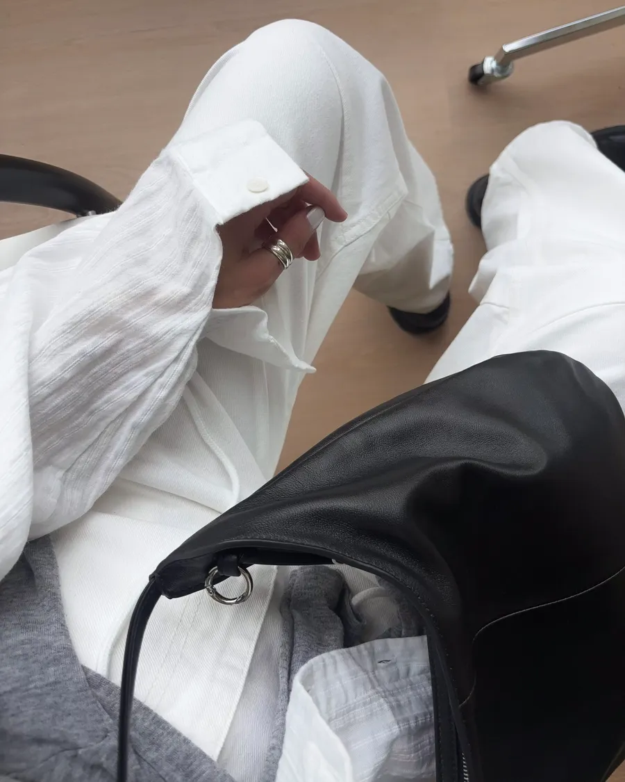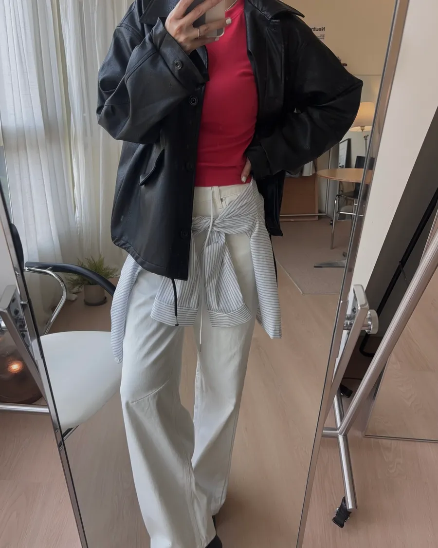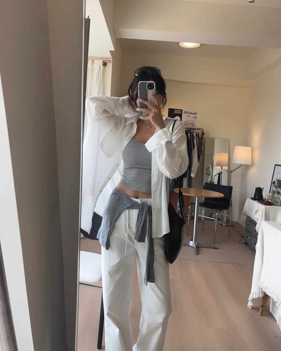 A15 抽繩翻蓋口袋白寬褲 S/M