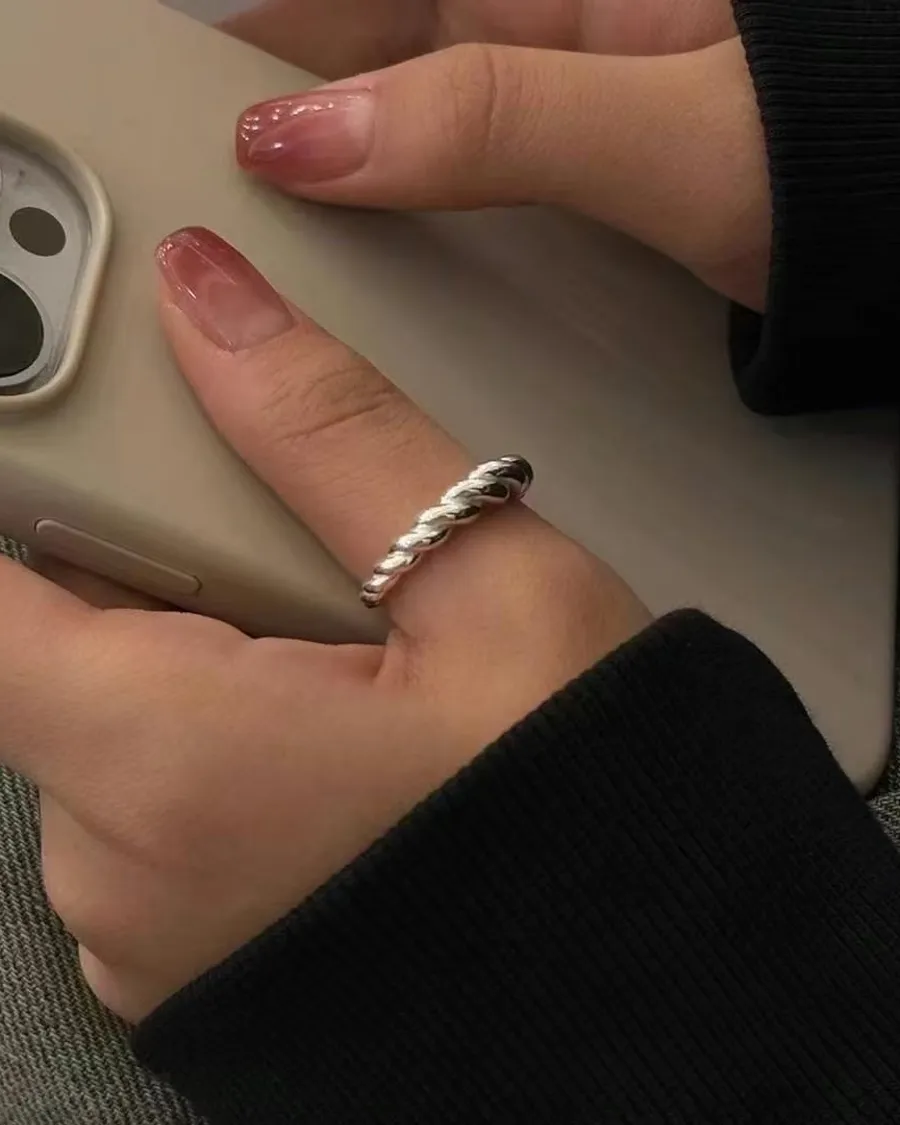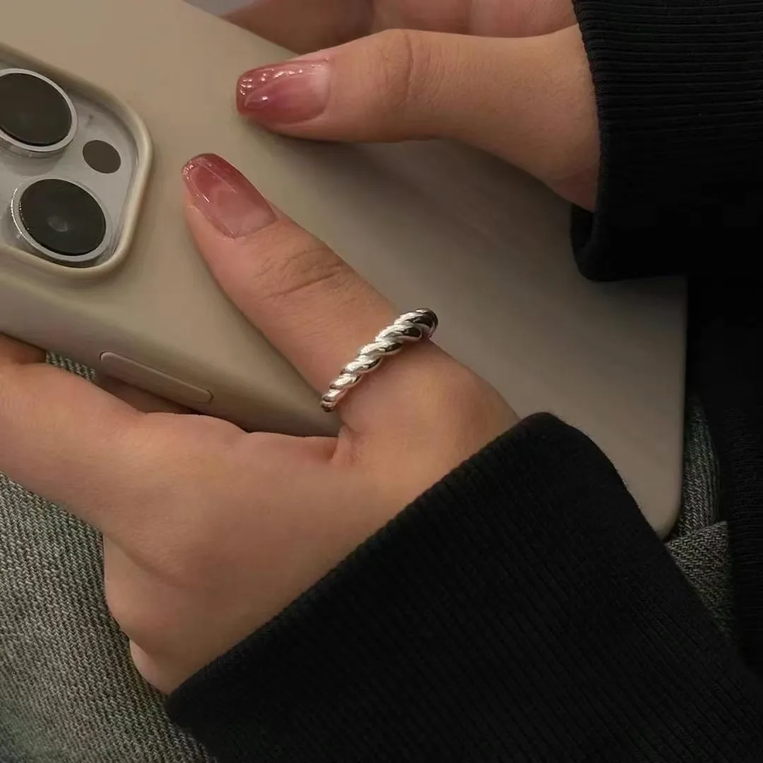 Silver925 實心麻花纏繞戒指