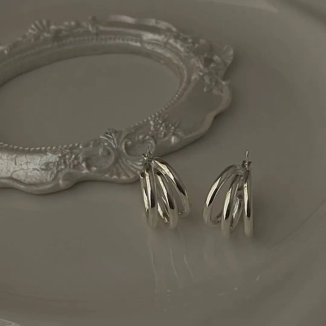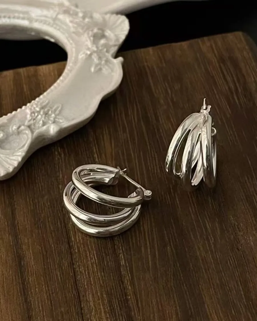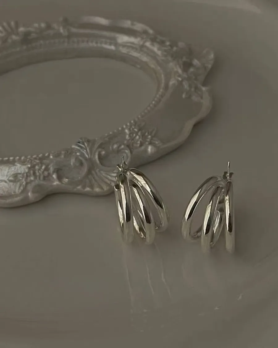 Silver925 重工 結構線條多環光版耳扣