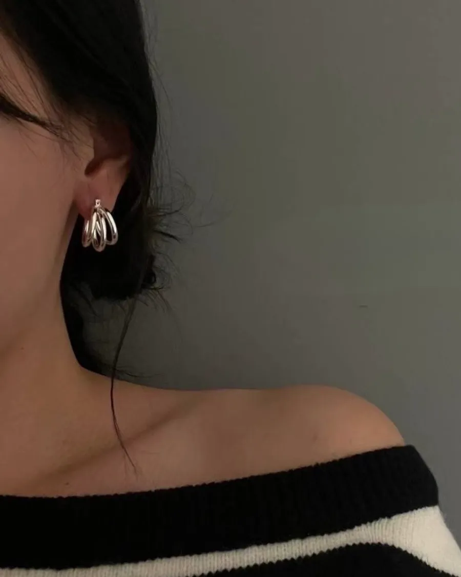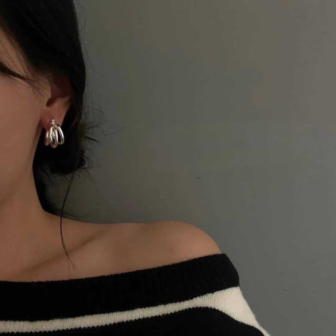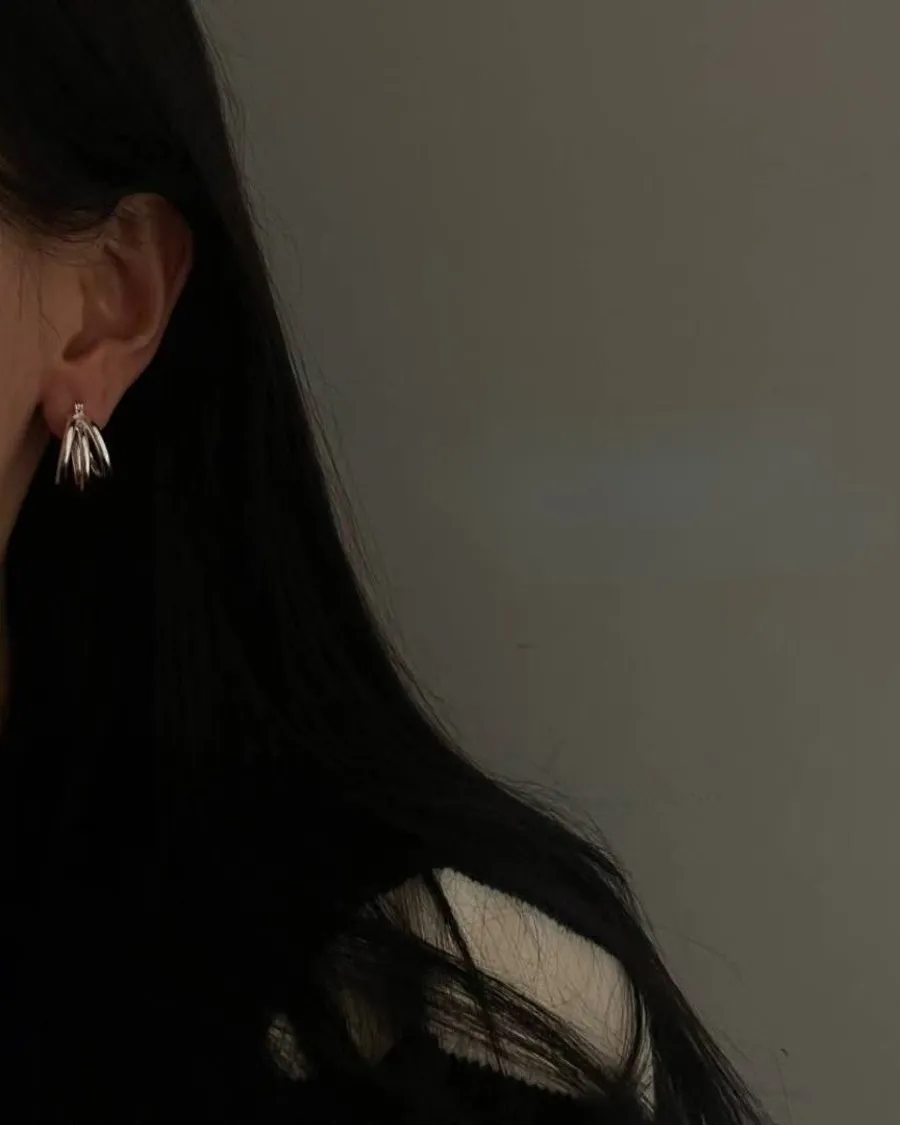 Silver925 重工 結構線條多環光版耳扣