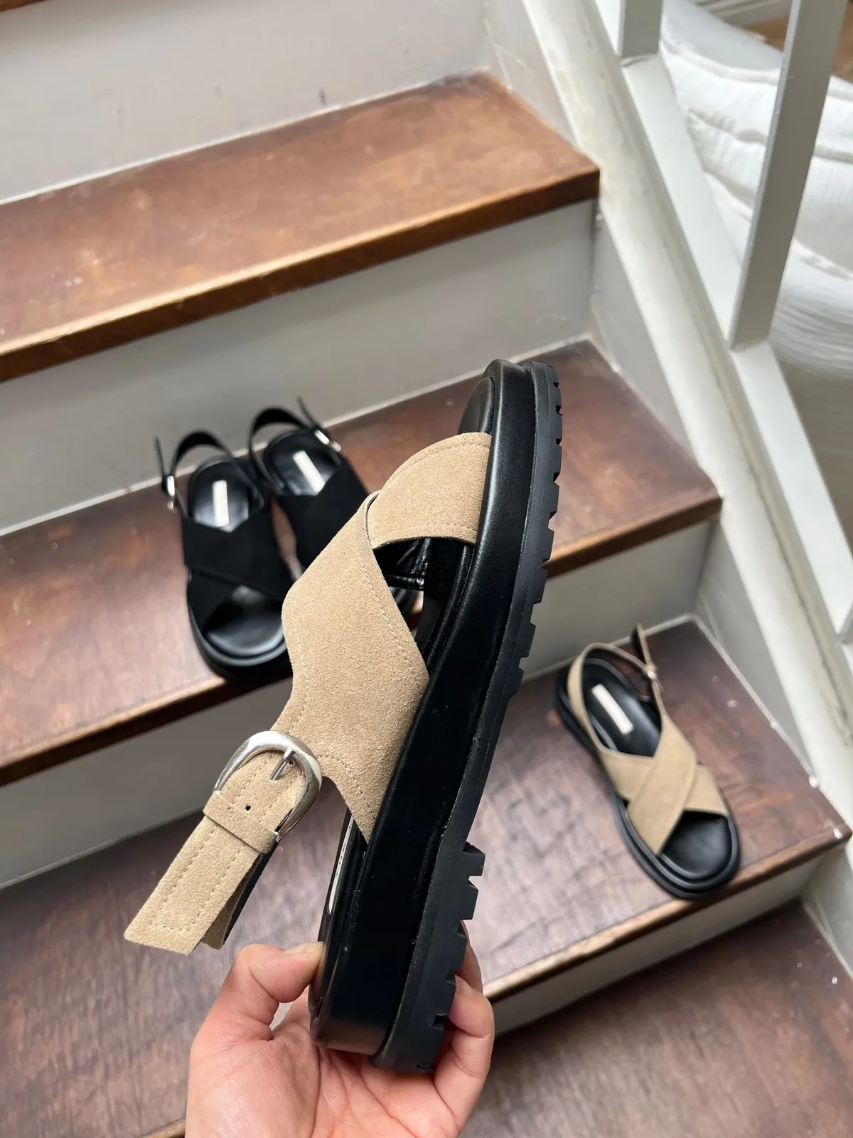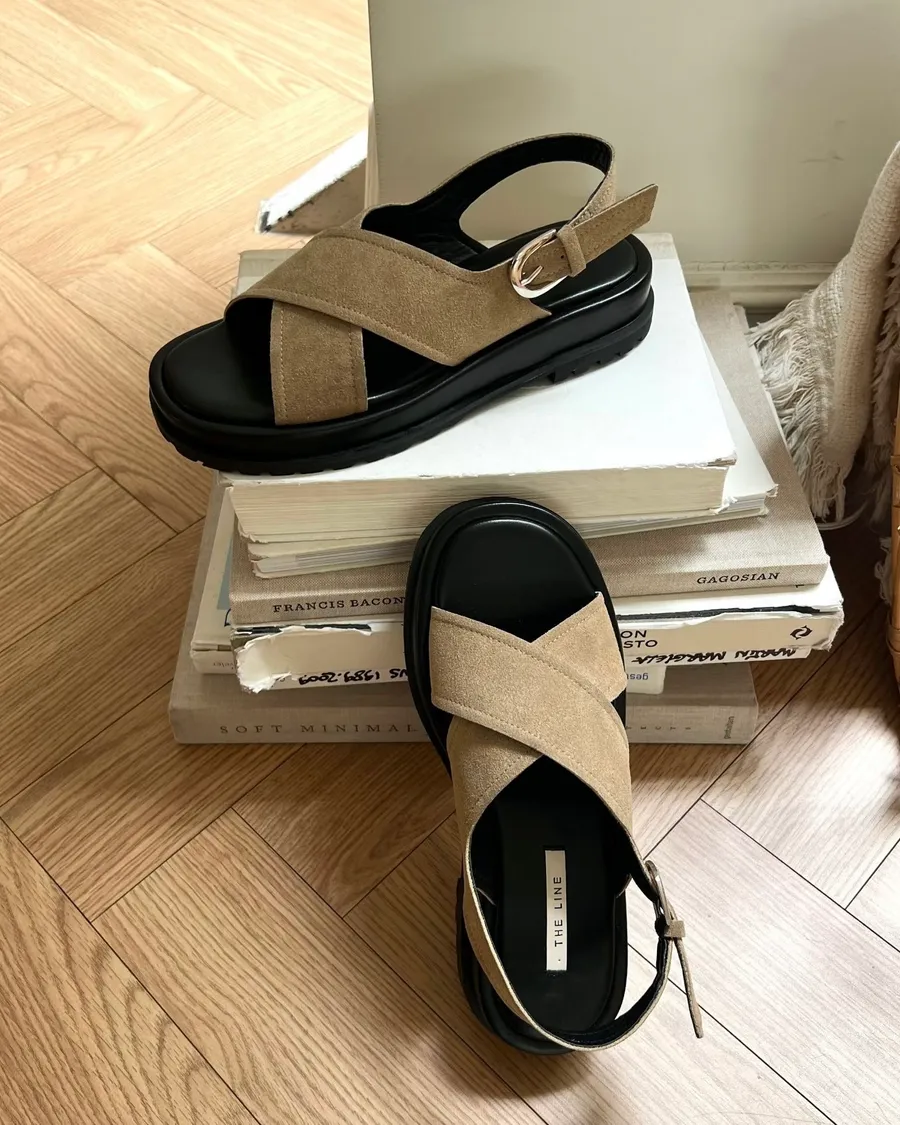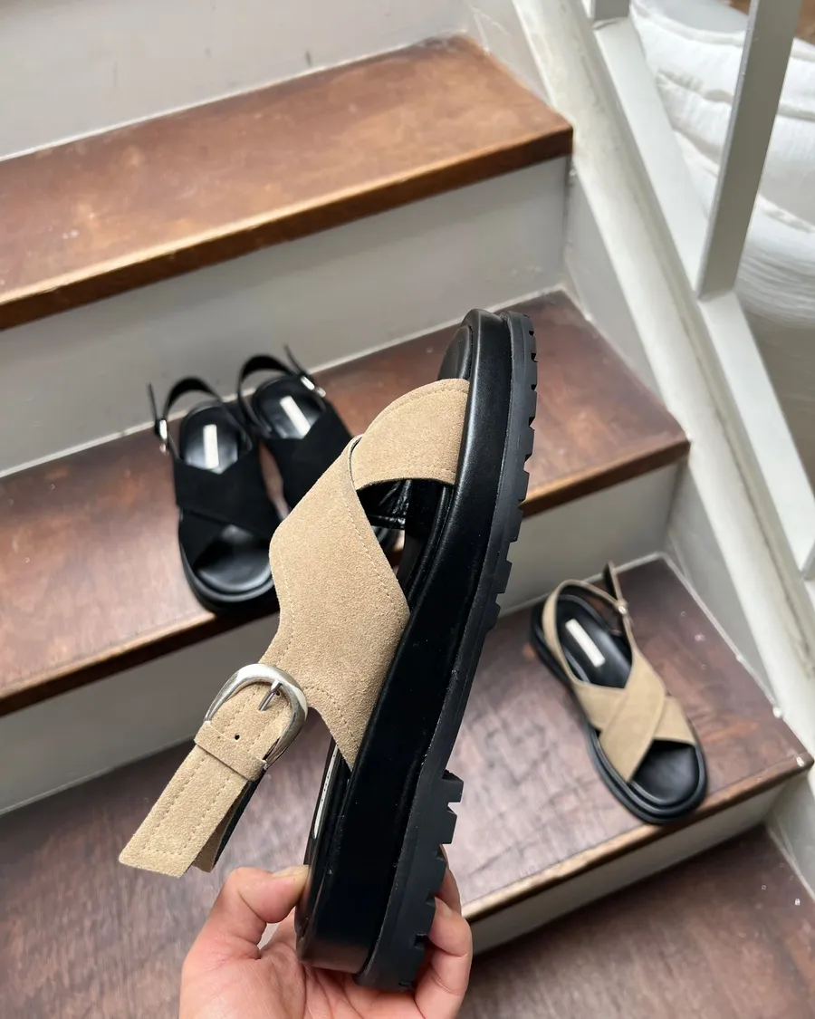 慵懶週末 麂皮交叉微厚涼鞋 2色