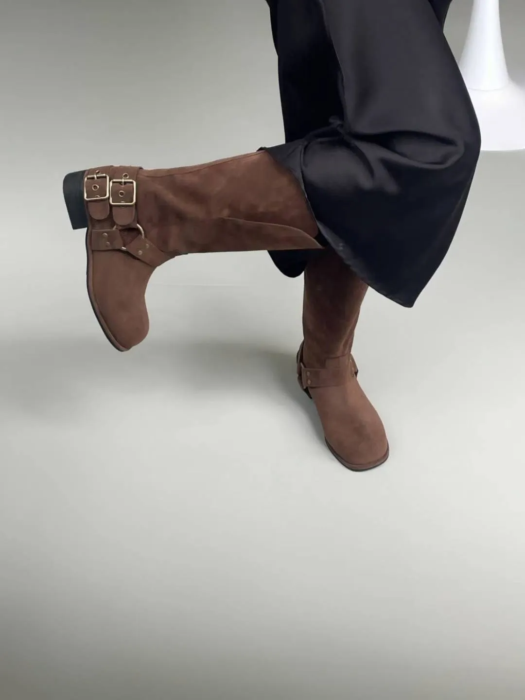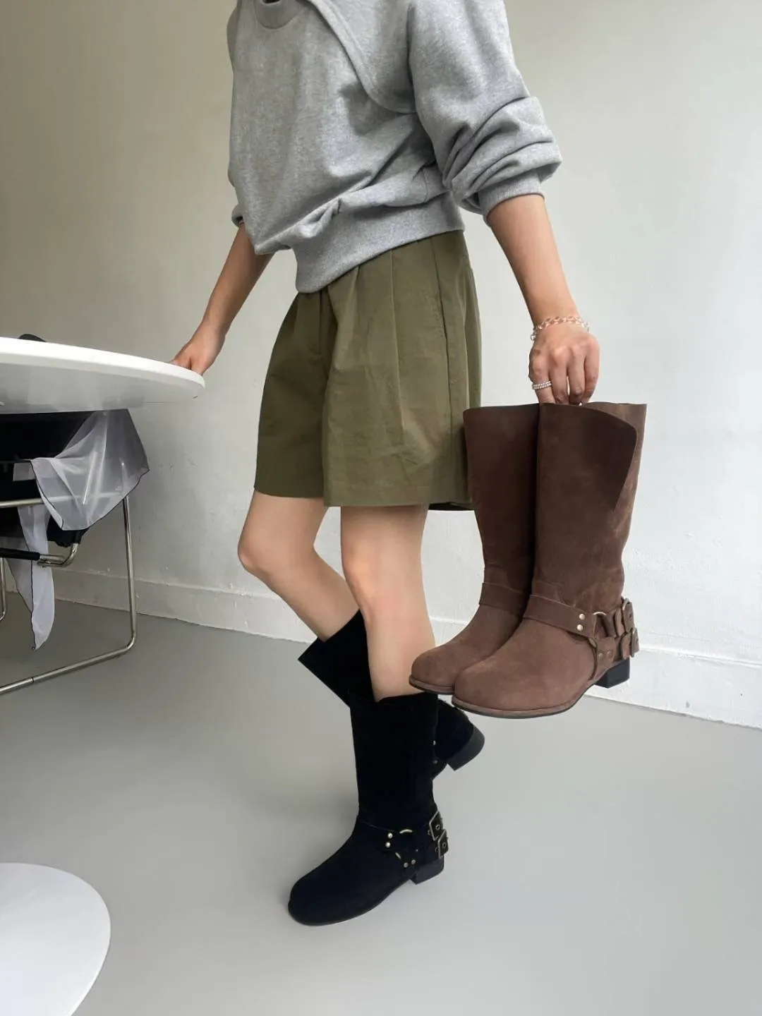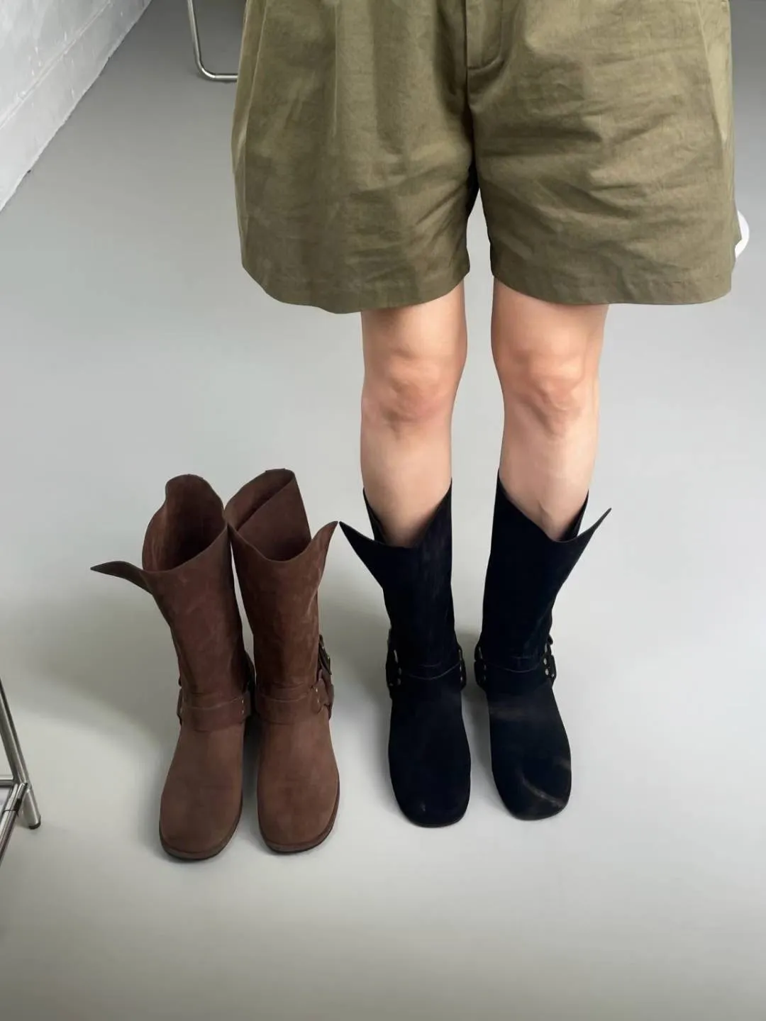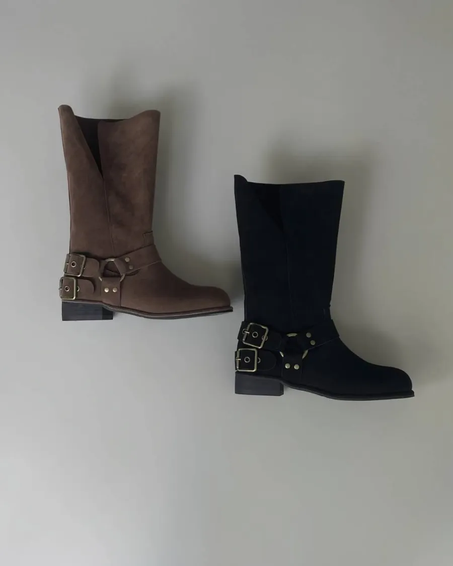 今年很多品牌都推出卯釘元素的靴款中筒設計卻在側邊做了開叉的變化讓側面更修飾,看起來俐落又隨性翻折的設計讓穿搭多了層次感兼顧設計感與實穿度的款式