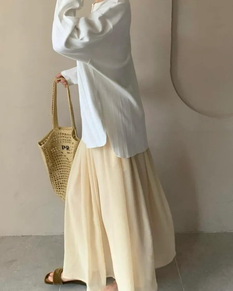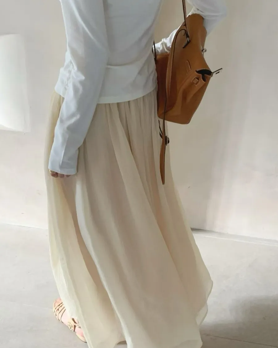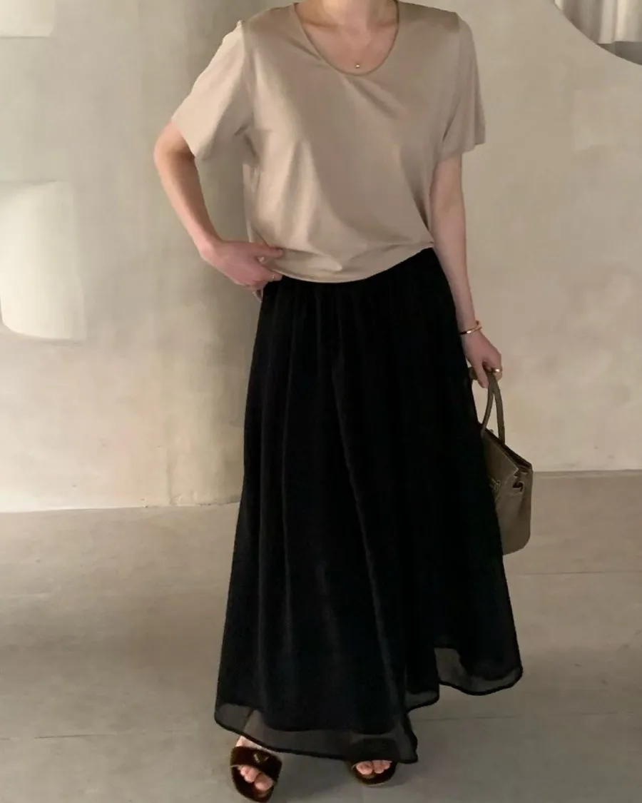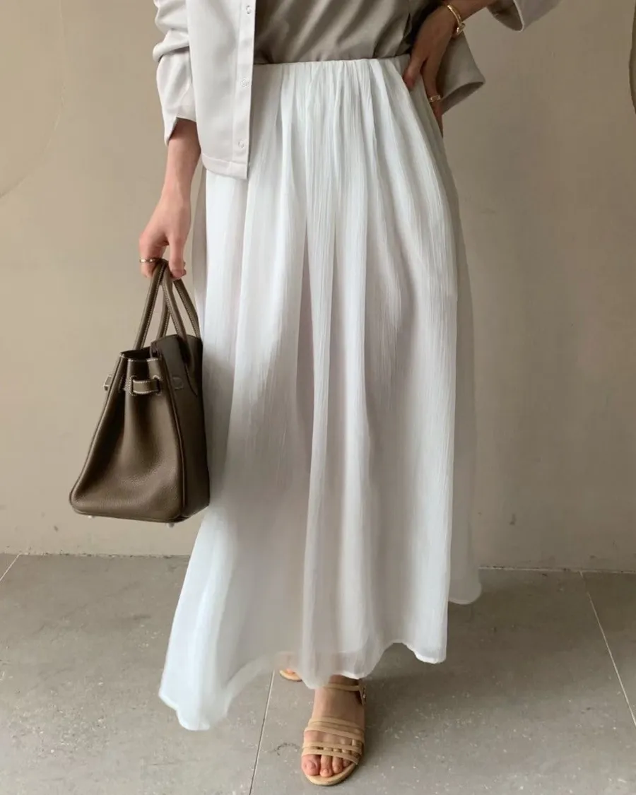 熱門代購 | K635微光混紡輕摺長裙 4色