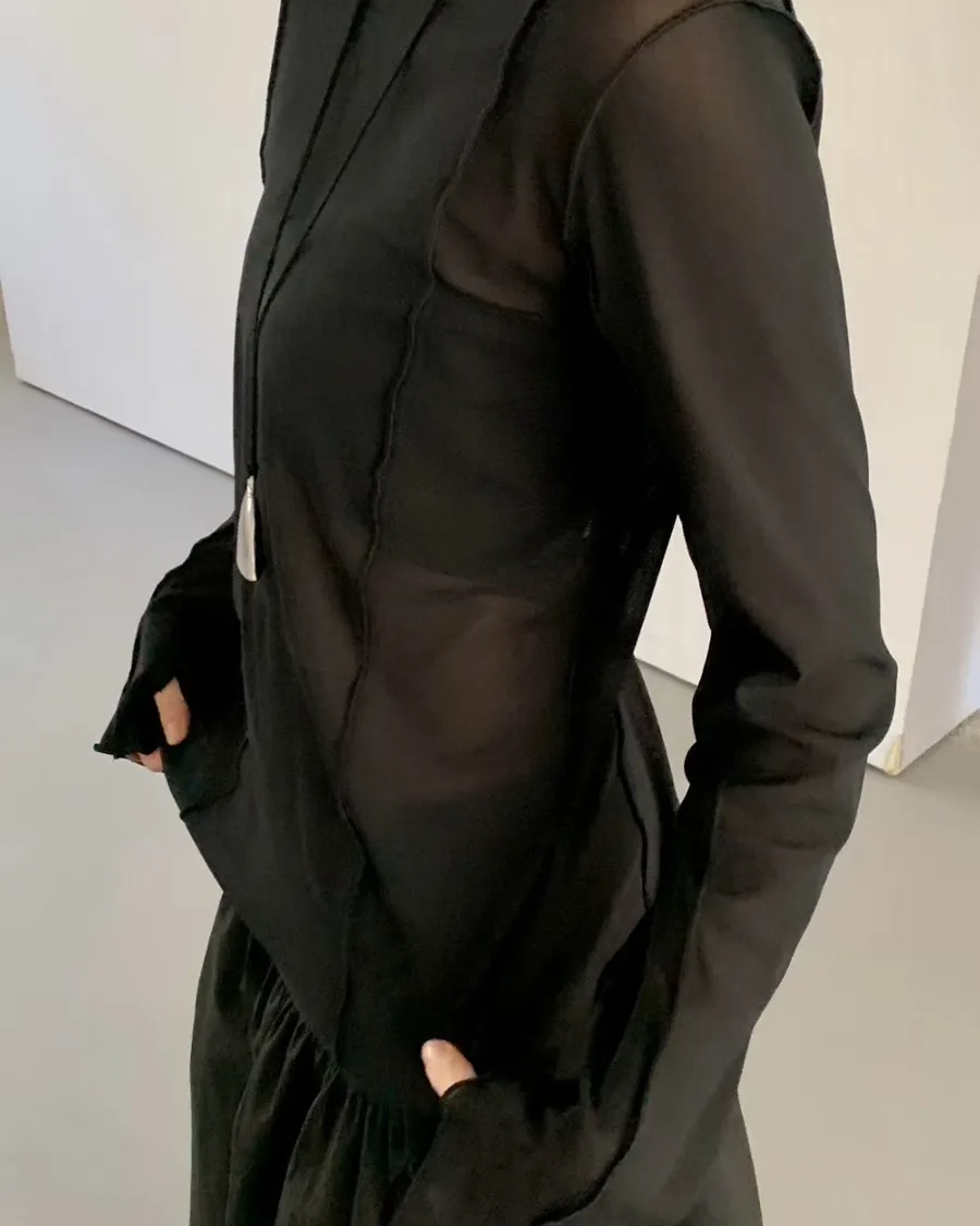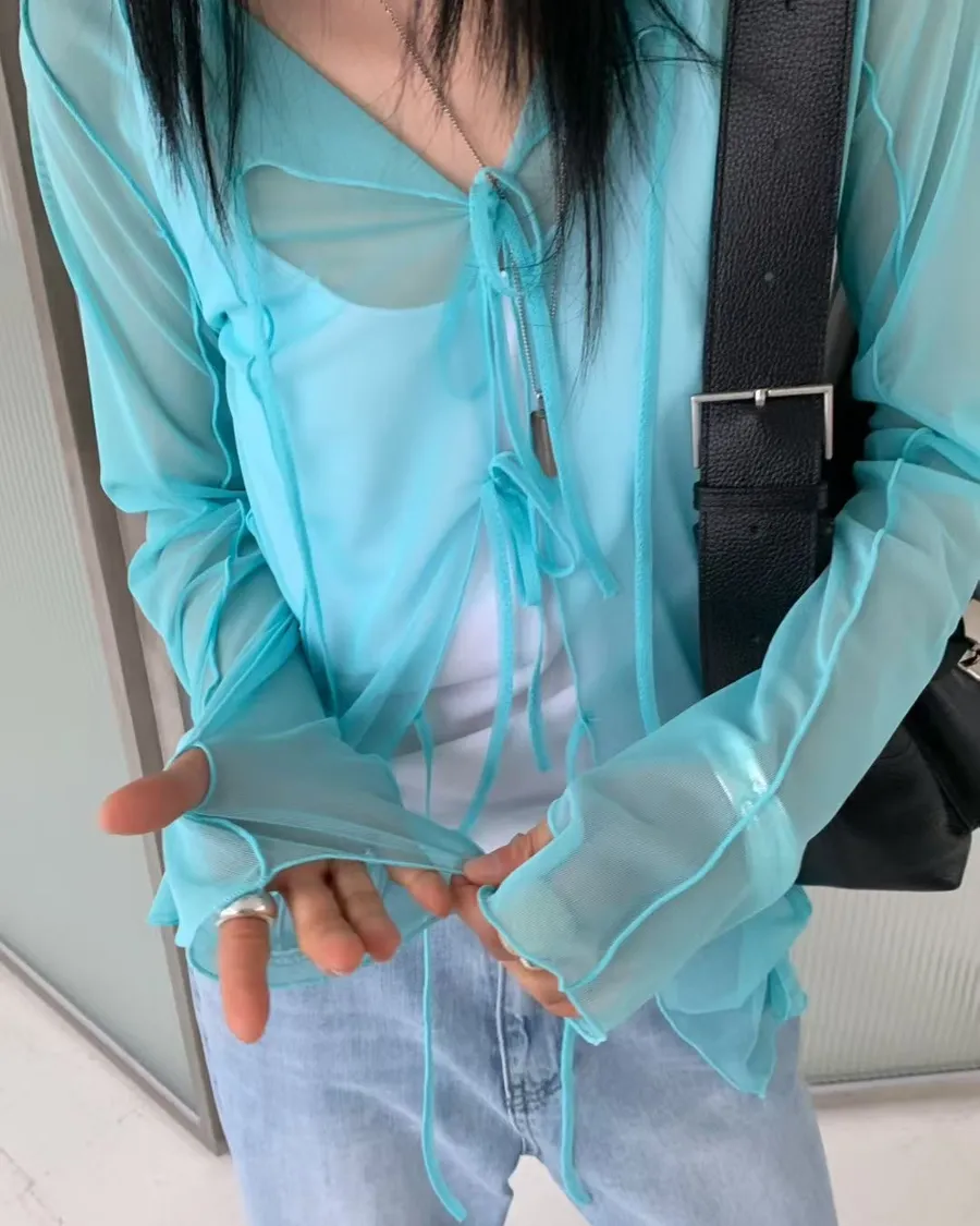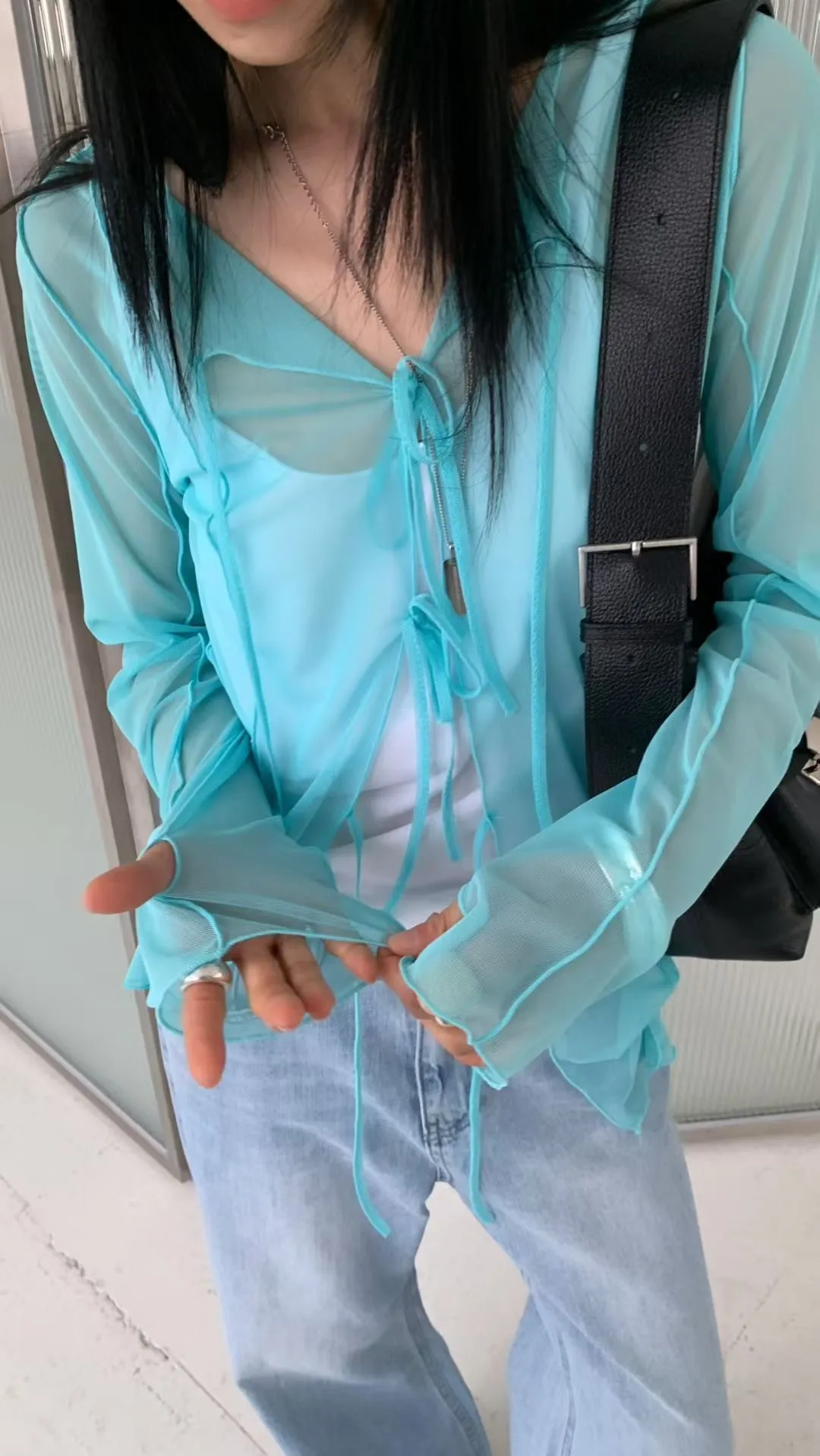 熱門代購 | K636帶網紗雙穿透肌上衣 4色