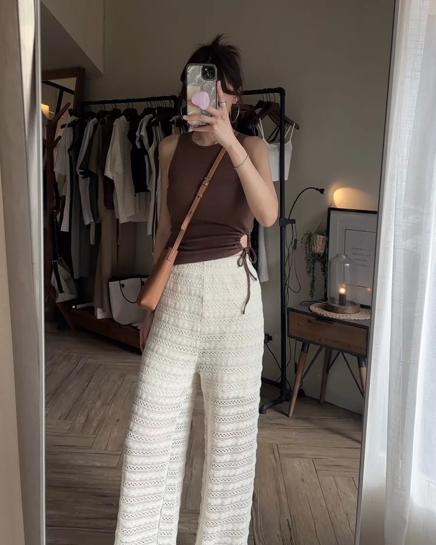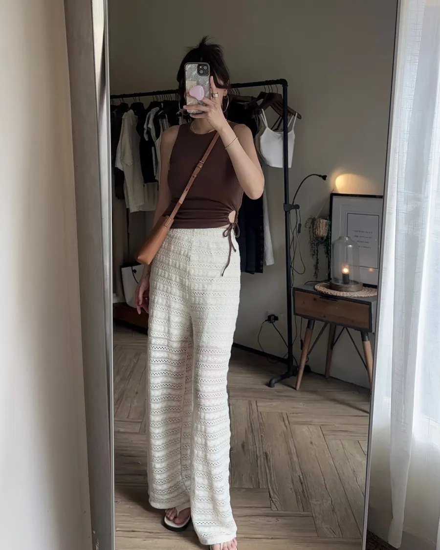 P609 渡假編織蕾絲寬褲
