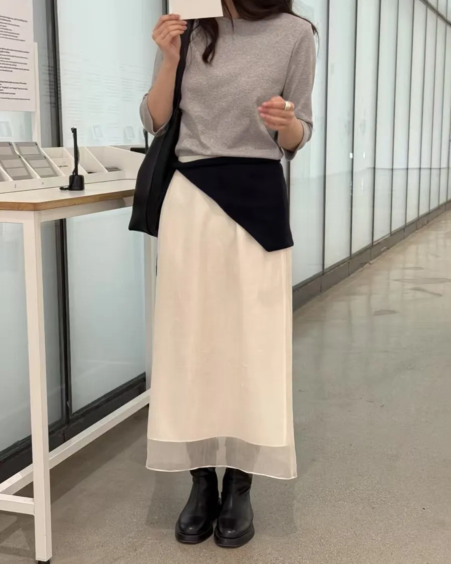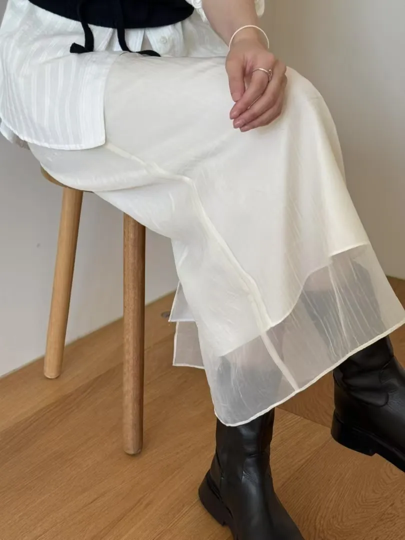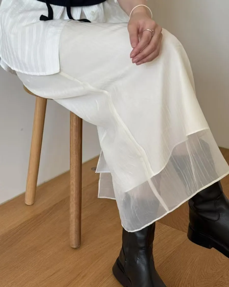 P610 奶油白混紡紗裙