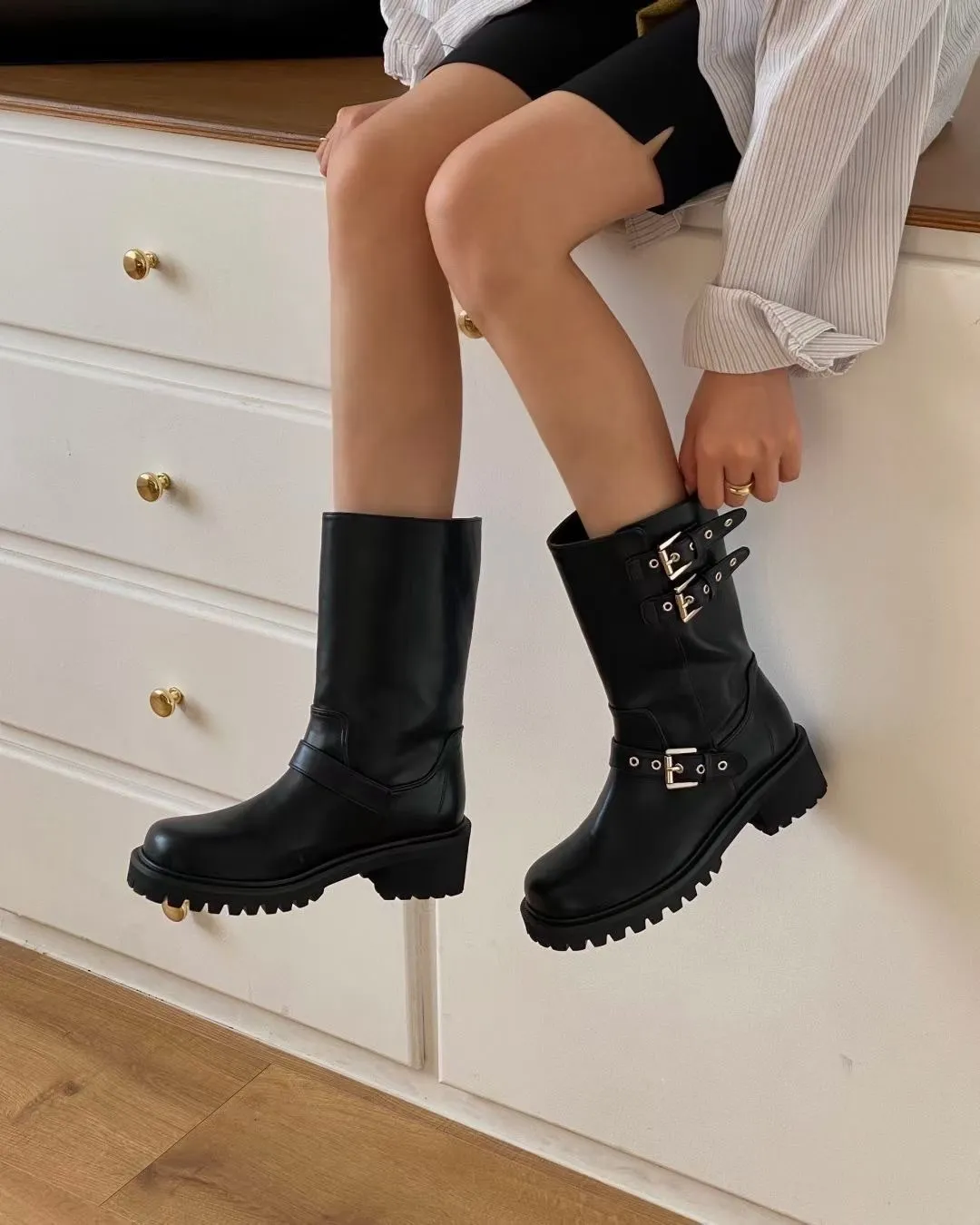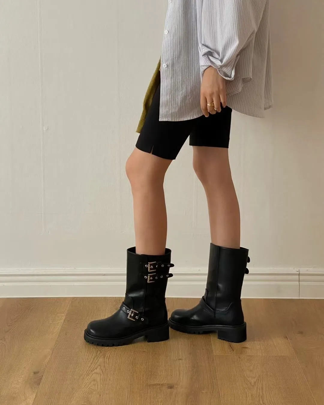 十足適中筒高剪裁,巧妙修飾小腿線條,
